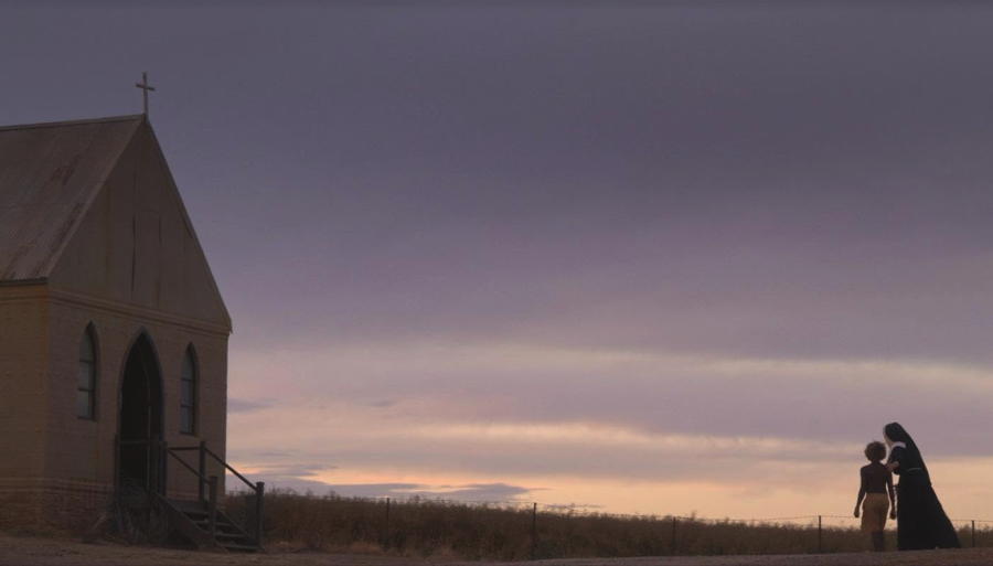 The film opens with a title card briefly explaining the Australian government policy in the 20th century of attempting to forcibly assimilate Indigenous children into White Australian culture – but it does this more forcibly and directly (see the text above). It also explains that the church was one of the main agencies involved in this process. Immediately following the text the narrative opens with a young (9-10 year-old?) Indigenous boy being finally overpowered by two police officers in open country. He is transported by horse, train and motor vehicle from the edge of the ‘Great Sandy Desert’ in North East Australia to an orphanage several days travel away run by the Benedictine Order (the film was mainly shot in South Australia). We learn this from a voiceover reading of a letter. Otherwise we learn little except that this is wartime, presumably in the early 1940s. The boy doesn’t have a name and appears to have no connection to other Indigenous groups in the region in which he was found. It was often the practice to take children like this hundreds of miles across Australia, as we learn in the film Rabbit-Proof Fence (Australia 2002).