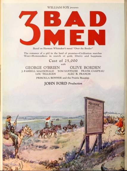A series of wanted posters introduces the 3 Bad Men, led by “Bull” Stanley (Tom Santschi): with his two sidekicks Mike Costigan (J. Farrell MacDonald) and “Spade” Allen (Frank Campeau). They are wanted for bank robberies and horse theft. But Bull himself is driven by the a search for the man who has seduced and led away his ‘little sister’. They first appear riding out of the setting sun. Then they espy the wagon train, which is also watched by Indians as their lands are invaded. Bull decides to follow the train to Custer as he may find the man he seeks there.