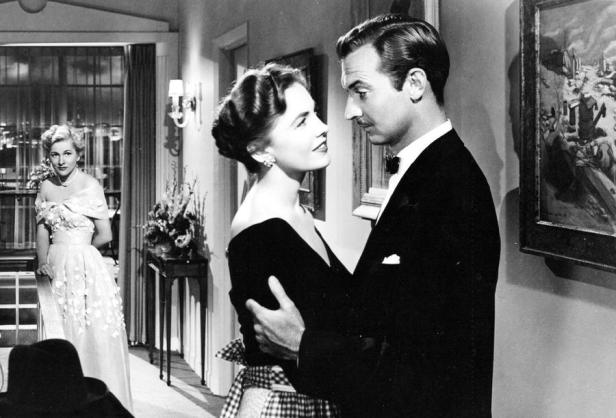 Joan Fontaine’s Christabel at first appears to be a charming and rather fragile young woman who over the course of the narrative will prove to be the complete opposite – a scheming and ruthless woman motivated by acquisition of money and material possessions as well as the satisfaction of ‘winning’ the attention of any man she meets. I think that she’s possibly the most loathsome character I’ve met in a picture for a long time. It’s not so much what she does (which is certainly ‘bad’) but the fact that she communicates exactly the opposite set of intentions. I’m not going to spoil the plotting of what several reviewers refer to as this ‘soap opera’ but rest assured she hurts everyone in the cast apart from Gobby, who having painted her portrait will later benefit from her notoriety. Joan Fontaine was 32 when she appeared as Christabel and therefore possibly ten years too old for the part. She was a very good actor and had appeared in Letter from an Unknown Woman for Max Ophuls (her best film in my view) a year or so earlier in a role in which she aged from a teenager to a mother quite believably, but in this RKO production she is presented in a stream of designer outfits that empathise her graceful neck and shoulders as well as her fine features, but also her slim and boyish figure. Various reports suggest that RKO originally considered Barbara Bel Geddes for the role. Ironically she also starred for Max Ophuls, opposite James Mason in Caught (1948). She would have been a very different Christabel. As it is, I took against Fontaine’s Christabel from the start, partly because she is seen next to Joan Leslie’s Donna. Leslie had taken a couple of years away from acting having moved into freelance working after leaving Warner Bros. in 1946. Another irony is that Leslie had played the younger sister in The Hard Way (US 1943) in which she is built into a star by her older sister played by Ida Lupino. Born to be Bad is also compared to that other 1950 film that swept everything else aside, All About Eve, in which Anne Baxter is the seemingly innocent young actor who undermines Bette Davis.