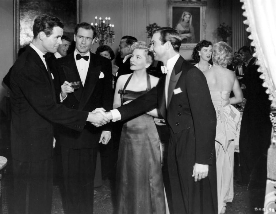 Joan Fontaine’s Christabel at first appears to be a charming and rather fragile young woman who over the course of the narrative will prove to be the complete opposite – a scheming and ruthless woman motivated by acquisition of money and material possessions as well as the satisfaction of ‘winning’ the attention of any man she meets. I think that she’s possibly the most loathsome character I’ve met in a picture for a long time. It’s not so much what she does (which is certainly ‘bad’) but the fact that she communicates exactly the opposite set of intentions. I’m not going to spoil the plotting of what several reviewers refer to as this ‘soap opera’ but rest assured she hurts everyone in the cast apart from Gobby, who having painted her portrait will later benefit from her notoriety. Joan Fontaine was 32 when she appeared as Christabel and therefore possibly ten years too old for the part. She was a very good actor and had appeared in Letter from an Unknown Woman for Max Ophuls (her best film in my view) a year or so earlier in a role in which she aged from a teenager to a mother quite believably, but in this RKO production she is presented in a stream of designer outfits that empathise her graceful neck and shoulders as well as her fine features, but also her slim and boyish figure. Various reports suggest that RKO originally considered Barbara Bel Geddes for the role. Ironically she also starred for Max Ophuls, opposite James Mason in Caught (1948). She would have been a very different Christabel. As it is, I took against Fontaine’s Christabel from the start, partly because she is seen next to Joan Leslie’s Donna. Leslie had taken a couple of years away from acting having moved into freelance working after leaving Warner Bros. in 1946. Another irony is that Leslie had played the younger sister in The Hard Way (US 1943) in which she is built into a star by her older sister played by Ida Lupino. Born to be Bad is also compared to that other 1950 film that swept everything else aside, All About Eve, in which Anne Baxter is the seemingly innocent young actor who undermines Bette Davis.