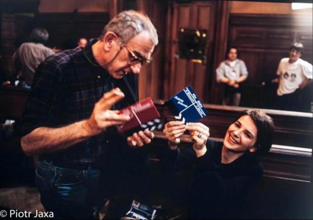 Kieślowski and Binoche on set (photo Piotr Jaxa)
