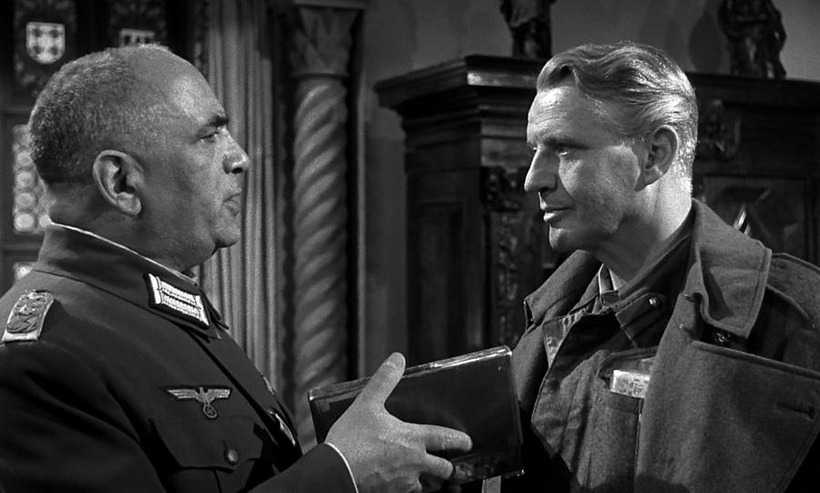 The Colditz Story is currently on offer on All4. I don’t think I’ve seen it before, having somehow missed it over the years. The true story, based on the book by Pat Reid, later formed the basis for one of the most popular drama series ever produced for UK tv (running from 1972 to 1974) and a later ITV tv film (2005). I haven’t seen either of these so here I’m going to comment only on the 1955 film. Because it is a well-known story I’m just going to pick out some of the main points about the production and its impact. If you don’t know the story already I’ll simply say that ‘Oflag IV-C’ was an Offizierslager – a camp for Allied officer PoWs, housed in a medieval castle in Saxony. It aimed to house the persistent ‘escapers’ from other camps in a high security location. Ironically it ended up being the camp that saw more successful escapes than any other. Initially, in 1940 when the narrative begins, there are four groups of prisoners: Polish, French, Dutch and British. Despite the threat that escapees will be shot, relatively few deaths occur, although some prisoners are killed during prison breaks. In case you are wondering, the Geneva convention re PoWs meant that officer prisoners could not be put in labour camps – surprising perhaps given the brutality of the Nazi regime but perhaps the recognition of the convention (which didn’t apply across the board in Germany) was more to do with the traditions of the Wehrmacht and earlier German armies.