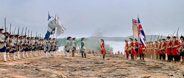 Magua leads the the British into an ambush by the Hurons but Hawkeye (Daniel Day-Lewis), Chingachgook (Russell Means) and his son Uncas (Eric Schweig) rescue the Major and the two women, killing the Huron captors except for Magua who escapes. Hawkeye is the adopted white son of Chingachgook, who with Uncas is known as “the last of the Mohicans”. In reality, the other Mohicans migrated, eventually ending up in what is now Wisconsin. The remaining trio are living alongside the colonists, but agree to take the rescued British to Fort William Henry. This action-packed opening sets up a complex set of relationships which will underpin the remainder of the narrative. Magua is an implacable enemy of the Mohicans. The two Munro daughters, Cora (Madeleine Stowe) and the younger Alice (Jodhi May) are potential partners for Hawkeye and Uncas but Cora is also being pursued by Major Heyward. The Mohicans are not initially part of the war itself and they tend to identify with the colonists, some of whom have been recruited as militia, rather than to accept orders from the British officers. Mann created what is in generic terms an action-adventure romance with a personal perspective rather than a war combat picture.