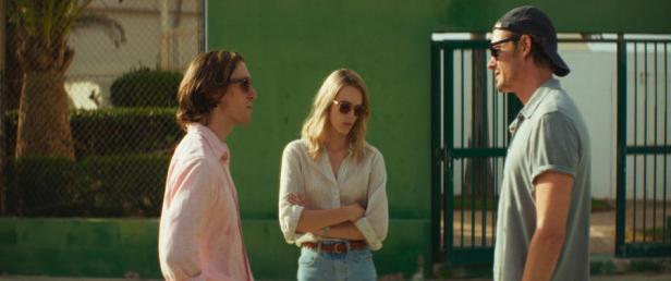 Tom (Sam Riley) is a tennis coach at a large hotel on the island. He was once a professional player before an injury and he has now been a coach for several years. Off the court his life seems aimless and he spends his evenings smoking, drinking and drug-taking and having casual sex with various women tourists. His job does not seem very onerous and often the booked lessons are unattended. One day a woman and her 10 year-old son appear without booking: Anne (Stacy Martin) and Anton (Dylan Torrell) are staying in the resort hotel with Dave (Jack Farthing) the husband and father. He doesn’t appear until later. For Tom this is an interesting diversion. Anton is keen to learn and Tom is attracted to Anne who seems vaguely familiar. When Dave finally appears he seems a combination of the brash and possibly ‘snooty’ type of middle-class Englishman, finding fault with the hotel and ‘splashing the cash’. Overall there is something odd about the couple, although Anton seems an ordinary and clearly bright boy. Tom ends up helping the family get a better room in the hotel and then finds himself offering to act as a tour guide on his day off, taking them around the island. At the end of the day and a boozy night at a local club, Dave disappears. Tom and Anne are faced with looking for him and dealing with the local police who are forced to hand the case over to a detective from the city.