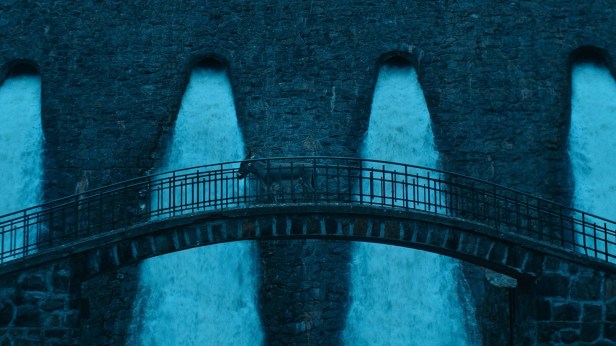 One of the most startling sequences as Eo stands before the force of water in a man-made environment