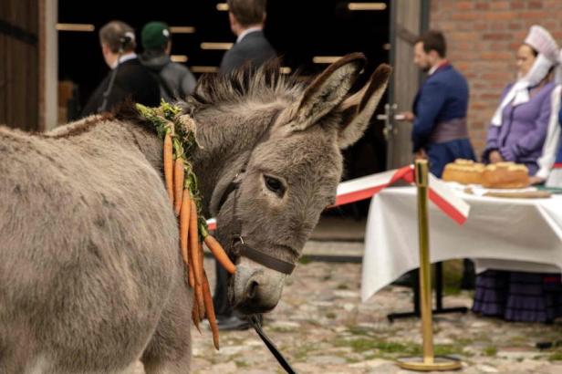 Literally ‘roped in’ to decorate a corporate funding event Eo finds solace in a necklace of carrots . . .