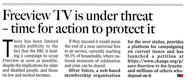 I rely on this, as I suspect some other other do, to access the BBC channels, Channel 4, Film 4, Talking Pictures and PBS especially. As a cricket fan with an interest in serious international news I was distraught when the Long Wave Service was wound up. I fear losing Freeview would entail an even wider loss. It is true that Al Jazeera is now a stream, but the technical quality was better when on a television channel.