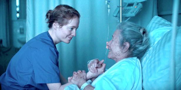 I’ve been waiting to see this since its release last year and it has been well worth the wait. The film’s German title ‘Heldin’ translates as heroine which aptly describes Floria, a senior nurse in a Zurich hospital. The English title is perhaps a little confusing. Many reviewers seem to have taken it to mean ‘night shift’ but that is mentioned as happening later. I think this shift runs from mid-afternoon into the evening. You might think that is nit-picking but when you start to analyse what we actually see it makes sense. When I think about it, what seems to be a narrative set in a specific time period is actually compressed by leaving out some of the fairly routine ‘in between’ scenes. My slight confusion is possibly because of the presentation of what seems to be a ‘documentary procedural’, at least for the first half of the film. This is emphasised by the camerawork and editing as we follow Floria from room to room and bed to bed.